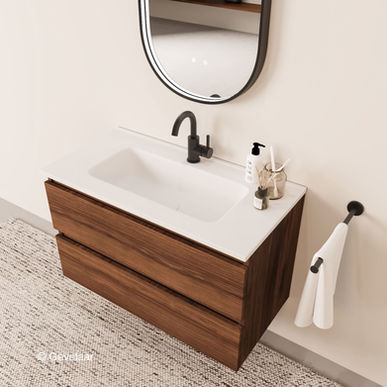 - Vlakke front noten badkamermeubel 90 cm. met 2 laden