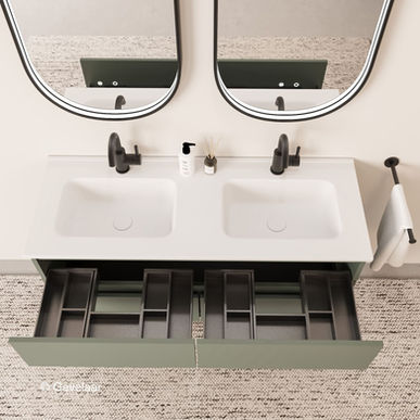 Tanaro Sobio badmeubel olijf groen wastafel mat wit dubbel 120cm 4 laden