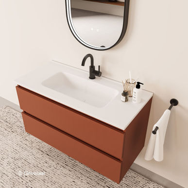- Vlakke front terracotta badkamermeubel 100 cm. met 2 laden