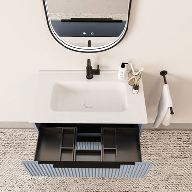 - Ribbelfront mist blauw badkamermeubel 80 cm. met 2 laden