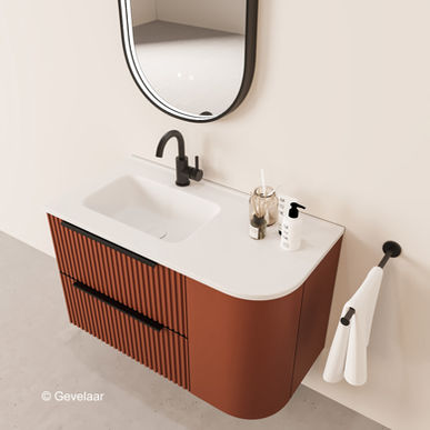 Tanaro Soft Rib badmeubel terracotta afgeronde hoek rechts 90cm wastafel mat wit