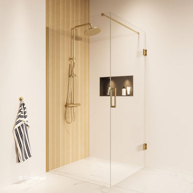 Thundra douchecabine helder incl. glasbehandeling 105 X 100 cm. Geborsteld goud