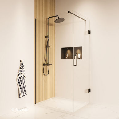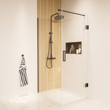 De Tanaro Thundra is een glas serie, exclusief van Gevelaar.nl. De serie bestaat uit nisdeuren, inloopdouches en douchecabines.