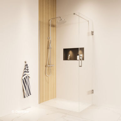 De Tanaro Thundra is een glas serie, exclusief van Gevelaar.nl. De serie bestaat uit nisdeuren, inloopdouches en douchecabines.