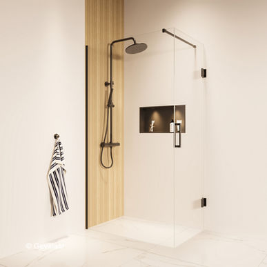 De Tanaro Thundra is een glas serie, exclusief van Gevelaar.nl. De serie bestaat uit nisdeuren, inloopdouches en douchecabines.