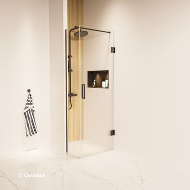 De Tanaro Thundra is een glas serie, exclusief van Gevelaar.nl. De serie bestaat uit nisdeuren, inloopdouches en douchecabines.