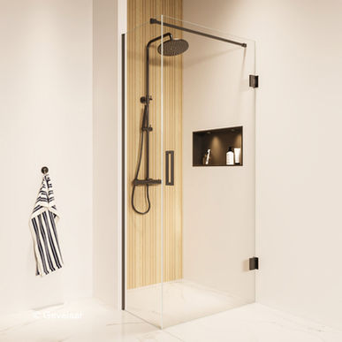 De Tanaro Thundra is een glas serie, exclusief van Gevelaar.nl. De serie bestaat uit nisdeuren, inloopdouches en douchecabines.