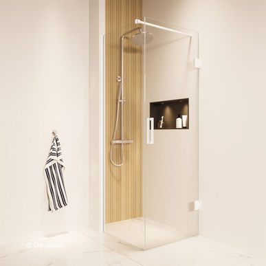 De Tanaro Thundra is een glas serie, exclusief van Gevelaar.nl. De serie bestaat uit nisdeuren, inloopdouches en douchecabines.