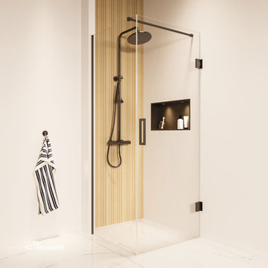 De Tanaro Thundra is een glas serie, exclusief van Gevelaar.nl. De serie bestaat uit nisdeuren, inloopdouches en douchecabines.