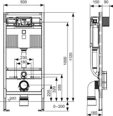 - TECE inbouwreservoir (hoogte 112 cm)