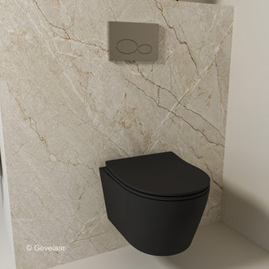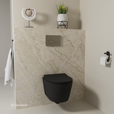 De set bestaat uit een solide Geberit UP320 inbouwreservoir, een strak vormgegeven Tanaro Pizarro wandcloset in mat zwart (met softclose, quick release en diepspoel), en het bijpassende X32 Wiesbaden bedieningspaneel in RVS metal. Dankzij de zwevende montage oogt de toiletruimte ruimtelijker én is deze eenvoudig schoon te houden.