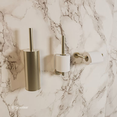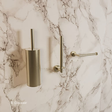 Maak je badkamer/toiletruimte compleet met deze mooie en praktische accessoireset in het geborsteld goud! Deze set bevat een toiletborstel, toiletrolhouder met vaste arm en een reserverolhouder die niet alleen functioneel zijn, maar er ook nog eens erg fraai uit zien.