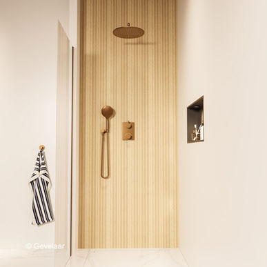 Tip: De Wiesbaden regendoucheset SET 6 in de kleur Brons koper past perfect met een bijpassende Wiesbaden inbouwkraan en badkraan voor je wastafel en bad. Zo creëer je een perfect badkamer in één stijl.