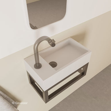 Wiesbaden Nick toilet fontein 40x22 keramiek glans wit links frame gunmetal