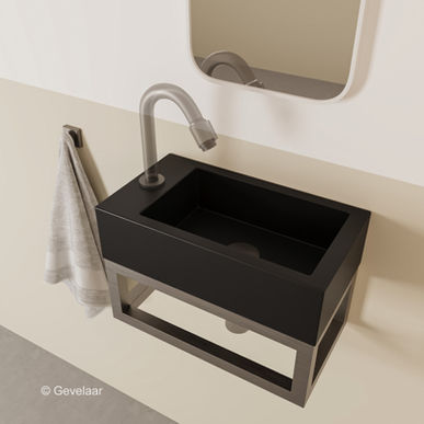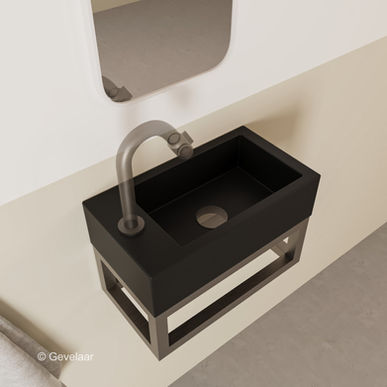 Wiesbaden Nick toilet fontein 40x22 keramiek mat zwart links frame gunmetal