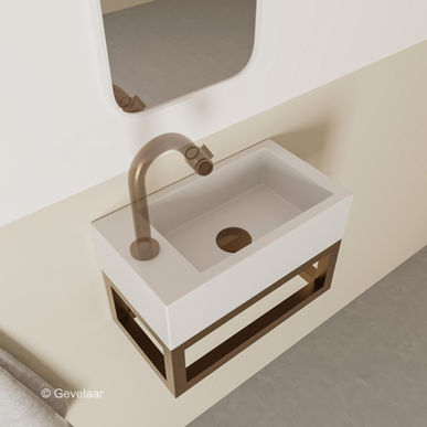 Wiesbaden Nick toilet fontein 40x22 solid surface mat wit links frame koper
