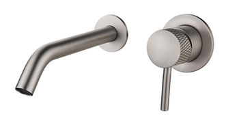 Wiesbaden Ribbd eenhendel wastafelkraan inbouw compleet geborsteld staal